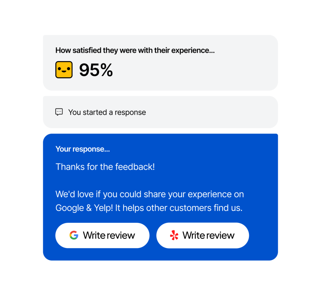 - Strengthen your reputation. Make it easy for customers to share authentic experiences on Google and Yelp.