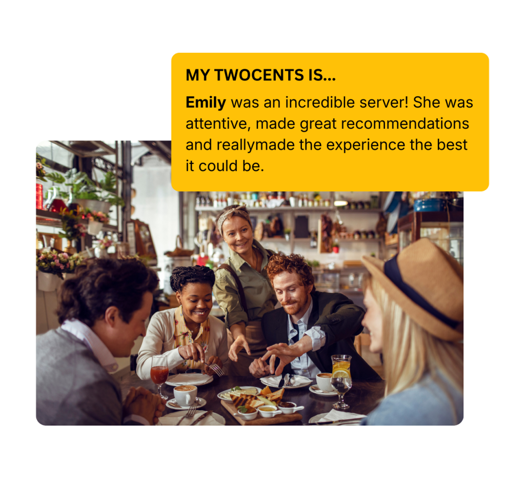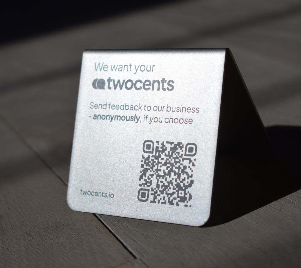 Get up to 3× more feedback than Google and Yelp combined. Twocents gives you printable QR codes for tables, a door sticker for walk-ins, and a digital kit for your website, socials, and emails. These simple tools raise awareness and make it effortless for customers to share praise and suggestions directly with you.