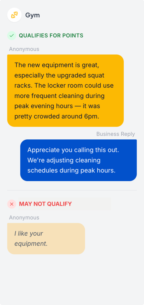 We reward feedback that’s honest, constructive, and genuinely helpful. Our AI reviews submissions to ensure they’re meaningful — not rushed or repetitive.
