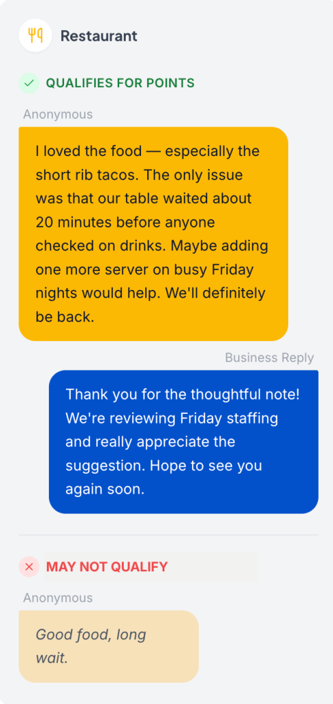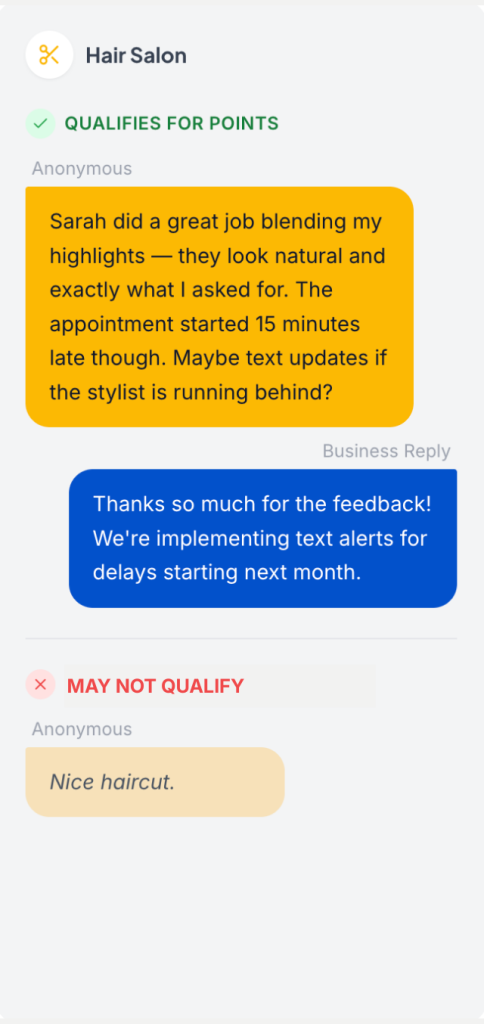 Businesses value honest feedback — and so do we. That’s why we reward customers who take a moment to share meaningful insights.
